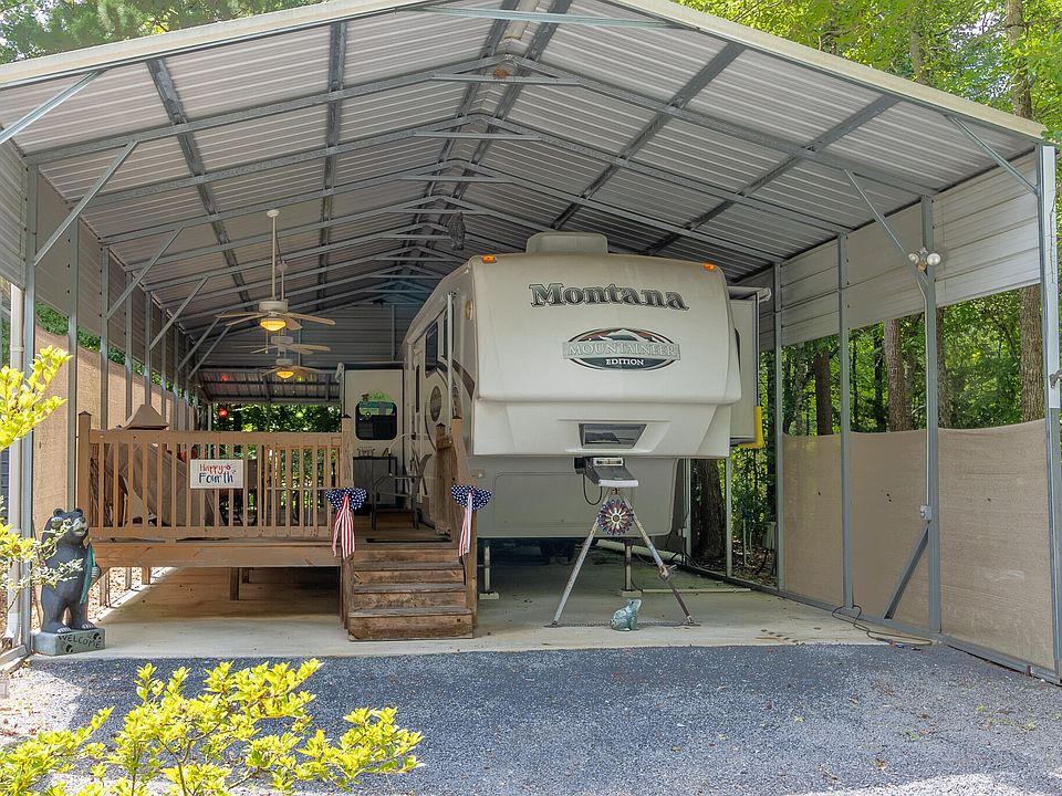 Welcome to your dream mountain getaway and permanent home base for your RV! Imagine the joy of making family memories while toasting marshmallows around the cozy fire pit, embarking on boating adventures at Carter's Lake, exploring picturesque nature trails, engaging in friendly games of tennis or basketball, or taking a refreshing dip in our community pool. The possibilities for fun and relaxation are endless! Included with the lot is a 35 foot RV that comes completely furnished and has been updated with new carpet, LVP floors, new refrigerator, and a 24X40 shed to keep the camper safe and protected! This sought-after location at Talking Rock Creek places you just 3 miles away from Carter's Lake Marina, and it's conveniently situated about an hour north of Metro Atlanta. For an affordable annual fee of $700, the comprehensive HOA dues include essential services like water and sewer, as well as the maintenance of common areas. Additionally, you'll have access to fantastic amenities such as the pool, basketball courts, tennis courts, and a recreational building complete with an exercise room and bathhouse. The active HOA organizes numerous family-friendly events throughout the year, ensuring that there's always something exciting happening in the community. Don't miss out on this incredible opportunity to own a slice of paradise at Talking Rock Creek RV Resort. With a cozy mountain getaway and a permanent home for your RV, your dreams can become a reality. Start making memories that will last a lifetime—contact us today!