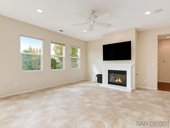 Welcome to 296 Tom McGuinness Jr Circle, a beautifully maintained single-level home nestled at the end of a quiet cul-de-sac in the prestigious gated community of Shady Grove in Fallbrook. With no direct rear neighbors and a lush greenbelt behind the property, this residence offers the tranquility and privacy so many desire, perfectly paired with nearby conveniences, community amenities, and Fallbrook’s signature charm. Built in 2010, this 3-bedroom, 2-bathroom home spans approximately 1,687 square feet and features an open floor plan filled with natural light. The spacious living area includes a built-in home entertainment system and a gas fireplace, ideal for cozy evenings. The kitchen is a chef’s delight, complete with granite countertops, a generous center island, rich cabinetry, and all appliances conveying with the home. The primary suite is a true retreat, featuring a soaking tub, walk-in shower, dual vanities, and a large walk-in closet. Tile flooring runs through the main living areas, while all bedrooms are upgraded with vinyl plank flooring for a clean, modern finish. The home is equipped with a smart thermostat, security system, and a paid-off solar system, offering comfort, security, and energy efficiency. Step outside to enjoy a professionally designed, low-maintenance backyard complete with mature drought-tolerant landscaping, built-in stone seating, and a curving walkway, ideal for peaceful morning coffee or hosting guests under the stars. A fully installed irrigation system supports the landscaping with ease.