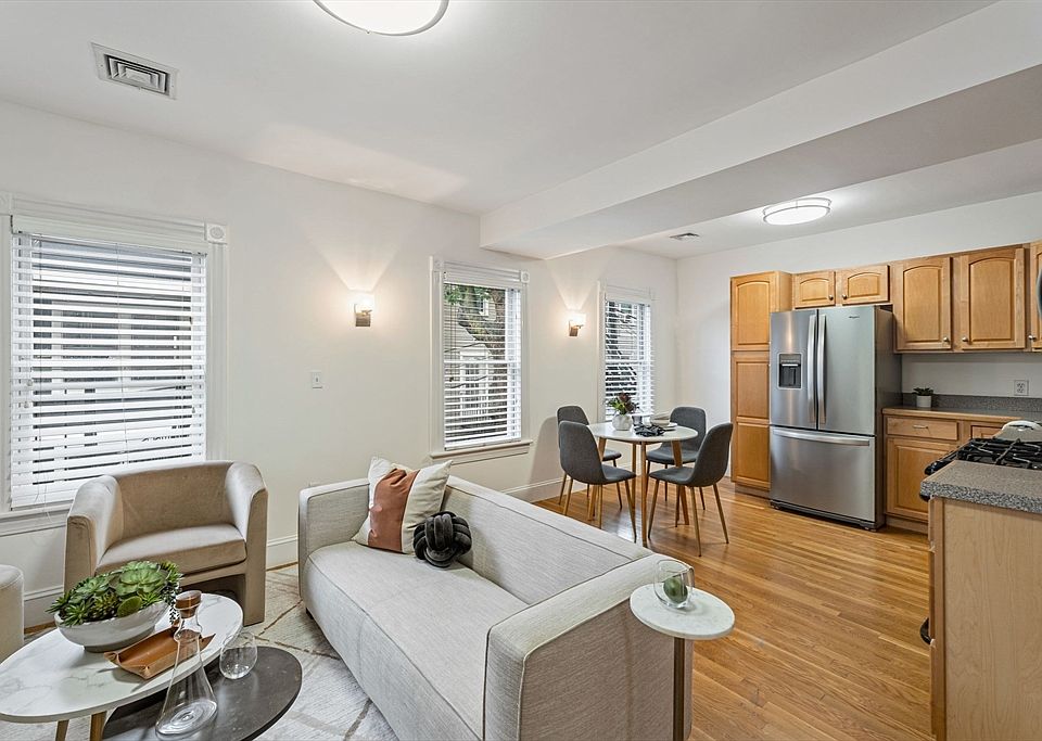 Welcome to this stylish 1 bedroom condo in the heart of South Boston offering 565 sq ft of thoughtfully designed living space. Hardwood floors run throughout the open floor plan, creating a warm, inviting flow from the cozy living area to the modern kitchen with new stainless steel appliances.The bedroom comfortably fits a queen bed, leaving additional space for a home office area, and features a double closet plus the separate shoe closet you didn't know you needed! Additional highlights include private storage unit, manageable condo fee, central air, and access to a low maintenance common backyard. Centrally located just one block from West Broadway, you are seconds from Lincoln, Loco, Capo, Foodies, the T and all of what this incredible neighborhood has to offer. Stop renting and enjoy this move-in ready gem on one of Southie's most desirable streets!