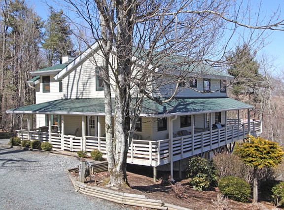 Just over a mile off the Blue Ridge Parkway in a peaceful + quiet setting discover this 4BR 5BA home on over an acre of well manicured grounds! Priced below appraised value! Covered + open decks wrap around the home + extend from various rooms of the home creating great places to enjoy the cool mountain breezes + enjoy the views! An updated kitchen opens into both the dining + living areas on the main floor, a great layout for entertaining! 2 living rooms on the main floor each house a stone fireplace + have deck access while sitting areas upstairs + a bonus room down add more space! The large Master Suite enjoys a private balcony, office, + BA w/ dual sinks, tub, + shower! The main floor BR could also make a wonderful sun-room w/ ample natural light! A great family home, convenient to Boone + Blowing Rock w/ easy year-round access! Amenities: Spacious BRs, granite counters, brushed bronze fixtures, custom trim, ample parking areas, covered carport, 1 car garage and workshop, RV Hook Up, unfinished storage space, raised flower beds, wooded privacy. Appx 1100 sf added in 2008!!!