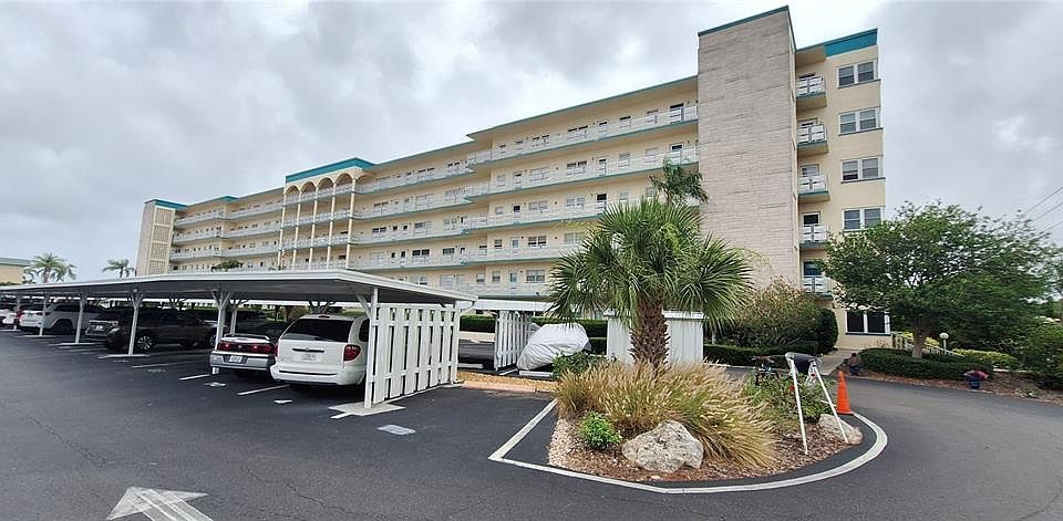 Welcome home to Town Shores Of Gulfport, a wonderful 55+ community—Fourth Floor One Bedroom Condo overlooking the Historic City of Gulfport and Boca Ciega Bay. This condo allows you to make it your own. You could pay more for a completely updated condo with someone else's taste and colors, or own this one and design it to your liking. The condo is conveniently close to the storage closet, elevator, and trash chute. One of the four heated pools is located just behind the building. The living room includes a dining room combo layout. The main bedroom features double closets with one being a walk-in closet. The enclosed Sunroom offers an array of options for sitting areas, office, dining, etc. The condo includes a Covered Carport parking spot and guest parking. The Jamison building is pet-free, the roof was replaced and the exterior was painted in 2020. Town Shores has many wonderful amenities to offer, clubhouse with a fitness center, his/her saunas, game rooms, a ballroom and arts & crafts, bocce courts, kayak launch, boat slips, four heated pools, tennis/pickleball court, and several lovely neighborhood parks. Monthly fees cover Cable TV, Sewer, Trash, Water, Gas, Insurance, Maintenance Exterior and Grounds, Common Area Taxes, Community Pools, Escrow Reserves, and all recreational facilities. A short walk down the street and you are in downtown Gulfport with excellent dining options, sandy beach, volleyball courts, dance casino, rec center, art festivals twice a month, market day every Tuesday, gift shops, post office, coffee shops, welcome center, not to mention a first-rate library and senior center! Don’t miss this opportunity to own your place in paradise. Schedule your showing today!