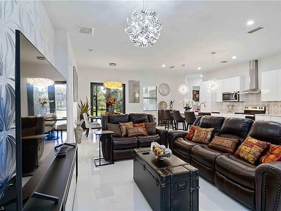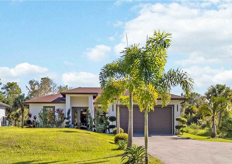Welcome to your private oasis, where comfort meets elegance. Newer construction built in 2022. This home features an OPEN FLOOR CONCEPT, 3 bedrooms +Den, possible 4th bedroom, 2-bathroom, LARGE ISLAND with granite countertops, COMTEMPORY WHITE CUSTOM CABINETRY, PANTRY, stainless steel appliances, tile floor, water softener with reverse osmosis system under kitchen sink and 2 car garage. A screened in Lanai to entertained guest. CUSTOM LIGHTING and 8FT INTERIOR DOORS. This property is just minutes from the beach, and fine dining downtown Naples. Golden gates estate is growing with shopping plaza and Publix just 4-miles away. Perfect for those seeking a tranquil lifestyle with no HOA. This modern single family home sits on 1.14-acre lot.