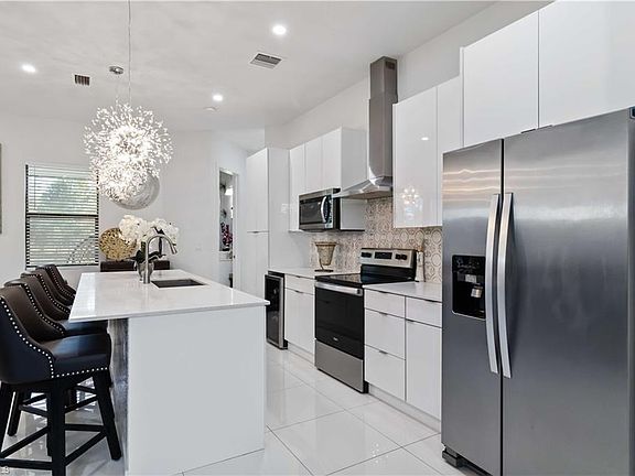 Open floor conceptScreened in lanaiTile floorStainless steel appliances