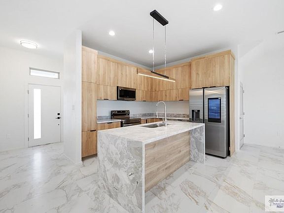 This charming new construction home features a huge, fully fenced backyard with stone landscaping, two trees, and lush grass in both the front and back. The added benefit of farther neighbors ensures extra peace and space. Inside, you'll find high-quality solid wood interior doors with elegant paneling, and a kitchen with full-height cabinets. The home is equipped with essential appliances, including a stove, fridge, dishwasher, microwave, washer, dryer and comes with a full curtain package for added privacy and style. With its spacious outdoor area and stylish finishes, this home offers comfortable living. Conveniently located near shopping centers, grocery stores, The Port of Brownsville, and SpaceX, it's the perfect place to call home. Schedule a tour today!