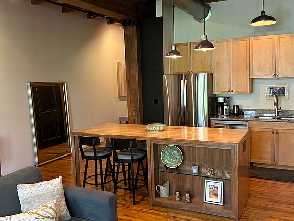 Spacious Loft with high vaulted ceilings, exposed wood, and charming brick. Lots of warmth and great lighting throughout loft with track lighting. It's a beautiful old building established in 1892 and made into lofts in 2002. Modern interior and kitchen, etc. Walking distance to Coors Field, Union Station, Ball Arena, 16th Street Mall, and Riverfront Park! Grocery stores, pharmacies, liquor stores, and restaurants are super close by. Wonderful park and walking bike trail along the Platte river is super close. Adjustable height desk, extra monitor, Google Fiber wifi, balcony with bistro table, gym on-site, dedicated covered parking spot, great kitchen for gathering and cooking, huge walk-in closet and double sink master bath, and a 1/2 bathroom. Lots of storage. 30 or more days, multiple months preferred