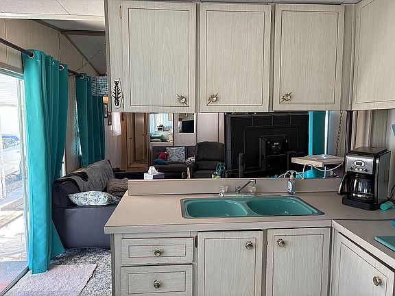 Sp 64 at Katherine Landing on Lake Mojave. It is on the upper level. 10/55 $590 per month space rent. It has two air conditioners which keep it really cold in the summer! Propane cooking, covered patio, parking for 3 vehicles, approx 4 year old water heater, carpeting in great shape, new sink and toilet in bathroom, queen bed in bedroom, both couches in living area make into beds, DTV dish. Ready for move in for snowbirds or place for family getaway with easy lake access. Call me or email me for more information: 760-220-5248 Nice1csr@msn.com