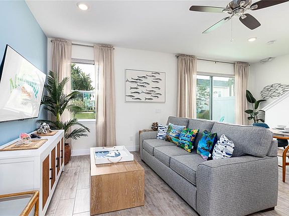 Welcome to 2960 On The Rocks - a FULLY FURNISHED 2 bedroom villa in one of Orlando's most sought-after resort communities available for an immediate move in date! This home comes complete with designer furnishings including all the essentials blinds, drapes, TVs, artwork, dishware, linens, and more. The open-concept layout is designed for modern living, with a large living area and a gourmet kitchen outfitted with premium Samsung appliances, including a full-size washer and dryer. Located in the heart of Margaritaville Resort, this property offers unbeatable flexibility. As a renter, you'll have access to four resort pools, a hot tub, a spa, a fully equipped gym, restaurants, bars, shops, and live entertainment all just moments from Disney Parks and Orlando's top attractions. Come see it today!