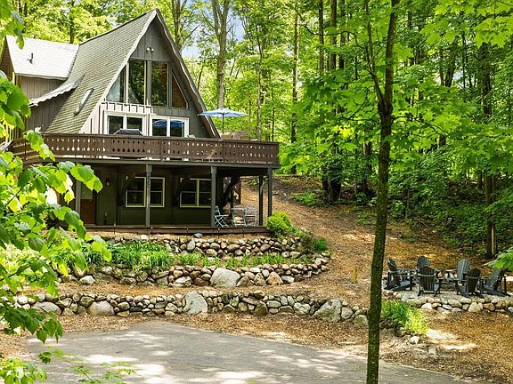 Welcome to this charming Hamel Chalet located in Schuss Village at Shanty Creek Resorts. Nestled at the end of a quiet cul de sac, this classic three-level chalet features stunning cathedral ceilings, a new skylight and floor to ceiling windows which bathe the main living area in natural light, offering an idyllic retreat perfect for relaxation and entertainment. Enjoy cozy evenings around the fire pit or host memorable gatherings on the spacious deck, all while surrounded by the natural beauty of Up North living. Recent improvements include a new septic system, mini-split heating and cooling units, updated flooring, new dishwasher and toilets, and fresh interior and exterior paint. A fun shuffleboard table adds an extra dose of entertainment for your guests or family. With a successful short-term rental history yielding $55,535 year-to-date, this chalet presents a fantastic investment opportunity and is being sold furnished and turnkey, with new furnishings bought over the past year. Whether you're searching for a personal getaway or a lucrative rental, this charming Hamel Chalet combines comfort, style, and exceptional charm in a prime location. Just minutes from the ski hills in Schuss Village and the 5 Resort golf courses, this delightful property is the essence of northern Michigan living. Say yes to the Up North Address.