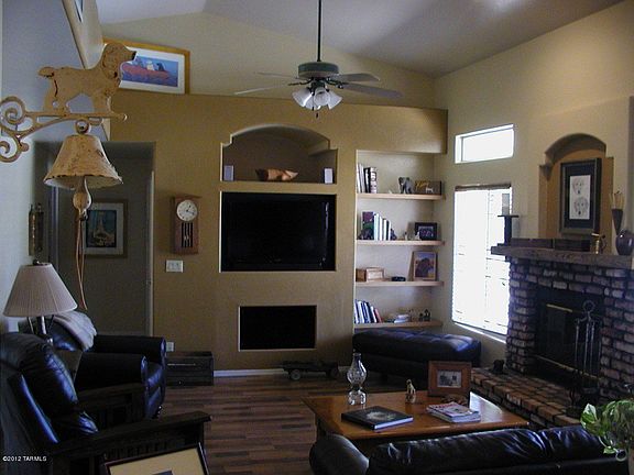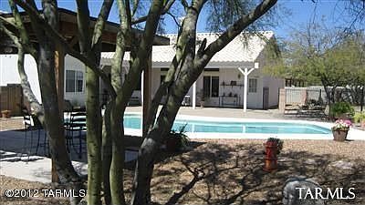 For more information on this property, contact the Listing Agent, Cindi and Paul Leitzke at (520) 906-9805 or cindiandpaul@LongRealty.com. Great location on private lane north of Overton Rd. Beautiful home on approx. 1 acre. Very pleasant Lg. fenced yard w/cov patio, huge pavered brick area, pool, very nice free standing ramada, fruit trees & some Mtn. views. Great open floorplan, vaulted ceilings, 4 BR(split plan), 2 3/4BA. Welcoming front entry opens to formal living room & dining area. Kitchen has awesome hickory cabinets, tile counters, upgraded newer SS appliances, huge walk-in pantry and spacious eating area. Kitchen overlooks wonderful Family Rm w/brick fireplace. 3rd BA has convenient outdoor entrance. Laundry room w/front loading W/D. Well maintained home. 3 car garage, storage outbuilding, room to build, No HOA. Owner has parked RV on site. Lots of space inside & outside for living & entertaining.