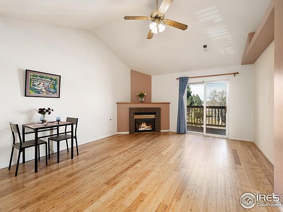 You'll love this sunny & cheery, top-floor condo in desirable west Fort Collins - clean, well-maintained, & perfectly positioned near trails, open space, and the future Hughes recreation area! Secure third-floor living with vaulted ceilings and a terrific skylight that fills the home with natural light. The living area flows beautifully to a wonderful balcony offering foothill views and a private storage closet. Inside, you'll appreciate the tile entry, recently installed bamboo floors, and a great kitchen with so much cabinetry and countertop space. All appliances are included, and the LOW HOA fee keeps ownership affordable and easy. Competitively priced and ready for its next happy owner!