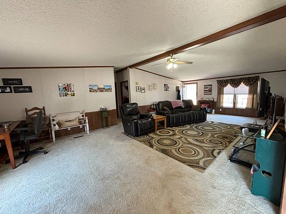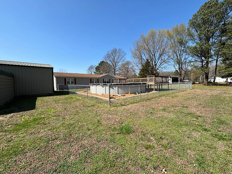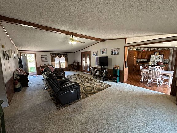 In the country but convenient to Harrisburg, Illinois is where you will find this 3-bedroom 2 bath manufactured home. Tucked down a driveway, you will see that this home has tons of storage. There are two large pole barn buildings. One is the garage which is 40' x 24' and 10' tall with a concrete floor and garage door opener. The pole barn is 24' x 40' and 8' tall features a large sliding door and an enclosed heated and air-conditioned space at the back which would make an awesome place to store hunting clothing, craft supplies or whatever you need. The home is large with over 2000 square feet. The split floor plan offers two bedrooms (14' x 10'8 each) and one bath located at one end of the home. In the middle there is a very roomy family room (30' x 19') with vaulted ceiling. The dining room (13' x 9') is semi-separated but adjacent to the family room and family style kitchen (20' x 14'). The kitchen has plenty of cabinet and counter space with sliding doors that go out to a completely fenced backyard and patio. The main bedroom (16' x 15') is located privately off the dining room with an ensuite bathroom (14.7" x 8.4"). This bathroom has a separate tub and shower. The large walk-in closet for the main bedroom is a nice large closet. This home doesn't lack entertainment space either. There are two large concrete patios. Just off one of the patios you will find the above ground swimming pool which has a new deck. There is also a very nice storm shelter convenient to the front door. Harrisburg, Illinois is in the heart of the Shawnee National Forest. The Shawnee National Forest is for the outdoor enthusiast. Hunting, fishing, camping, bike riding along with beautiful hiking trails are available to enjoy. Harrisburg offers everything you need. There are healthcare providers, a hospital, restaurants, churches, and shopping in Harrisburg. Love living in Southern Illinois and all it has to offer.