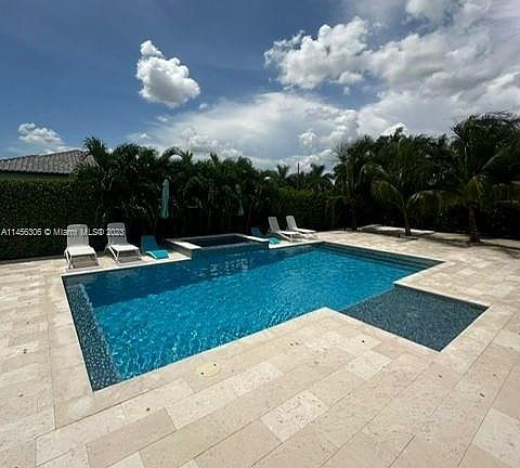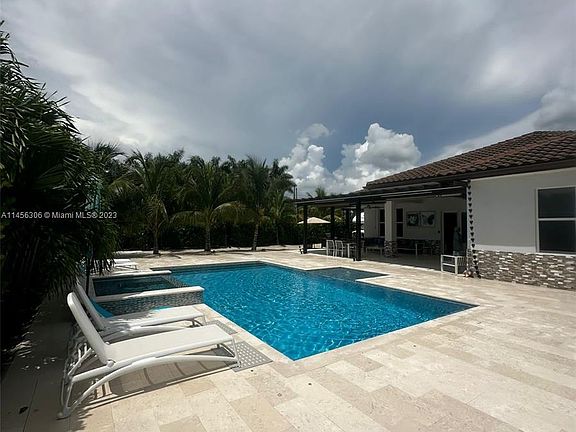 Spacious 5/3 Pool, home on a corner lot, in Homestead, built in 2020. No HOA. Oversized Master, walk in closets, all porcelain floors, high ceilings quartz counters and all stainless steel appliances. Impact windows and doors, 2 AC units, zebra electric shades. A heated pool and jacuzzi on an expansive shell stone deck, a wet bar and exterior shower make this the perfect place for family fun and entertaining. 2-car garage and paver covered driveway. Near shopping, restaurants, medical services, places of worship. Ease access to FL Tpk, US1, 1/2 hour to Florida Keys. ***See Broker's remarks**