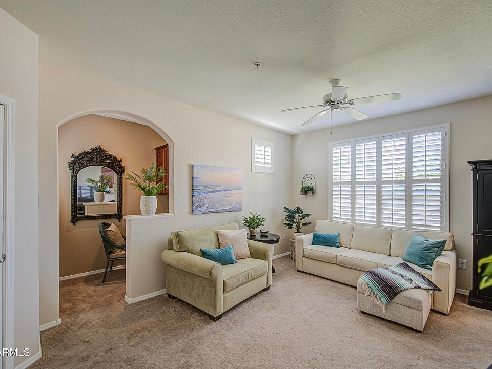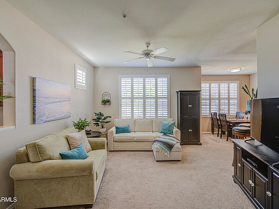 Luxury 2BR/2BA Condo in Gated Terra Vista at Tatum Ranch. Beautiful second-floor unit in a quiet, prime location near the pool and gym. Features include new wood shutters, spacious living area with built-in desk, open kitchen with breakfast bar, private balcony with pool views, walk-in closets, inside laundry,newer water heater, A/C, Refrigerator, & dishwasher. Covered parking included. FHA approved.