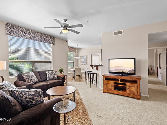 Welcome to the prestigious community of Terra Vista at Tatum Ranch with resort like amenities including sparkling and refreshing heated pool, spa and state of the art work out facility, no more gym memberships! This pristine fully furnished, east facing, 2 bed, 2 bath condo is FHA certified and approved and will not disappoint. HVAC and heat pump along with hot water heater replaced in 2021 and roof replaced in 2020, making this lightly used second home unit almost maintenance free. Perfect for rental, second home or full time enjoyment with two private patios, inside laundry, walk in closets, new blinds in both LR and DR and under cabinet kitchen lighting. The private office space is located adjacent to LR, so necessary in today's work from home world and the rear patio with access from primary bedroom suite and dining area has even more closet storage. What a wonderful opportunity to own a home that has been lovingly taken care of in a community that is so solvent and thriving. Walkability is a key feature of this condo's location. Within just a few minutes' walk you'll find an array of restaurants, cafes and shops, as well as salons, parks and even a library, making it easy to enjoy your daily routines and leisure time. Whether you're grabbing a coffee, getting groceries, or spending time outdoors, everything is right at your doorstep and just a short drive to Cave Creek town core is where you'll find even more entertainment venues, shops and restaurants. Cave Creek is renowned for its Cave Creek Rodeo and Buffalo Chip Saloon among other exciting events, where everyone becomes a cowboy in this rootin' tootin' Western town. Stop at the visitor center in town which offers many maps and brochures for hiking, biking, horseback riding and ATV rentals or for a more leisurely experience visit one of our amazing shops and music venues. There is always something fun going on in Cave Creek or visit our sister city, Carefree for additional fun and adventure! Come for a visit, stay for a lifetime!
