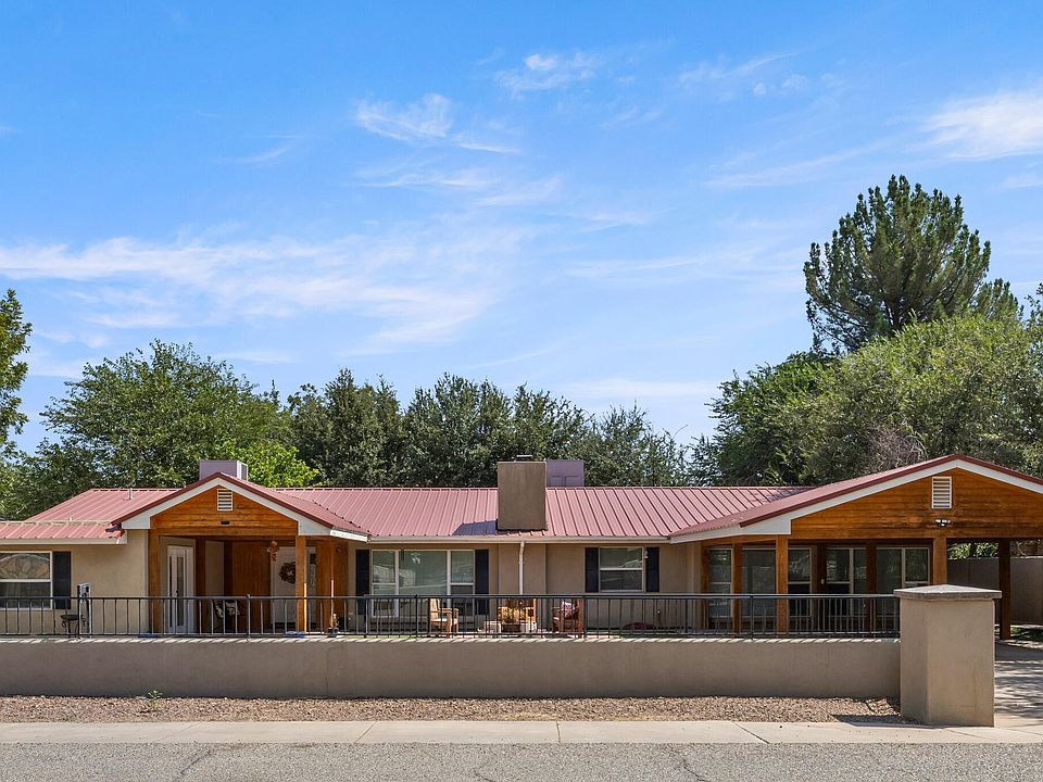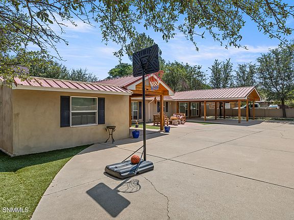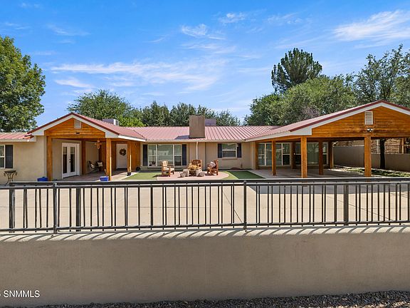 Step into this timeless Mesilla Park beauty! This spacious 4-bedroom, 4-bath home offers a unique floor plan designed for both versatility and comfort. Nestled on a .35-acre lot, it blends classic Southwest charm with modern updates. Multiple living areas include, a sunroom, hobby/game room, library, gym, spa, and dedicated office provide endless possibilities for entertaining, working, or relaxing. At the heart of the home is a bright kitchen with a breakfast bar, wood cabinetry, and gas stove, complemented by an oversized laundry/craft room for added functionality. Outdoors, enjoy an inviting in-ground pool, covered patio, and deck--perfect for year-round gatherings. A circular driveway with double gates and a 2-car carport enhance convenience and curb appeal. With updated double-pane windows, a metal roof, and refrigerated air, this home offers comfort, style, and a rare opportunity to live in one of Las Cruces' most desirable neighborhoods.
