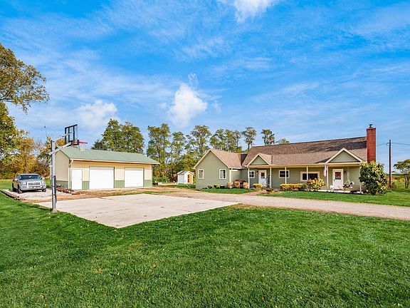 Recent improvements include a partially remodeled kitchen, an expanded primary suite and bathroom, updated living room, covered front porch, fresh paint, and new carpet throughout. Outside, you'll find a pole barn, chicken coop, and plenty of open space—bring your farm animals and enjoy country living at its best.