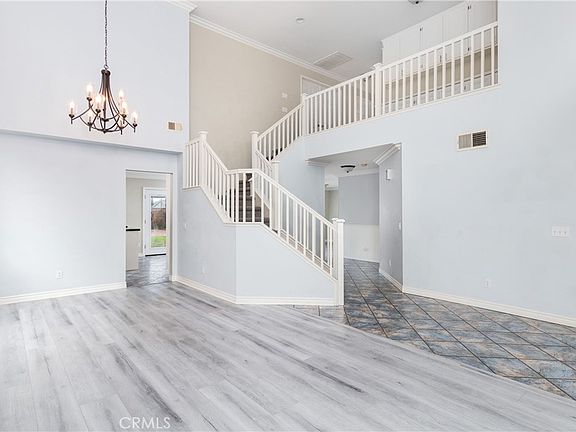 Beautiful home on pool size lot! The open and spacious floorpan offers 2,575. sq ft of living featuring 4 bedrooms, 3 bathrooms and a spacious upstairs loft. 1 bedroom + full bathroom are conveniently located downstairs; perfect for hosting guests. As you enter the home through the beautiful custom glass double doors you are greeted by the open floorpan and high ceilings with crown molding throughout. On the main floor you will find the formal living and dining rooms, kitchen, family room, laundry room, full bedroom and bathroom. The kitchen features beautiful white cabinets with black granite countertops, stainless steel appliances, kitchen island, plenty of cabinets for storage and Culligan reverse osmosis water filtration system at kitchen sink. The kitchen opens nicely to the family room, making it perfect for hosting and entertaining guests. The family room features custom plantation shutters on windows, gas and wood burning fireplace, a blue tooth ceiling fan, and beautiful French doors with built in blinds that opens up to the backyard. The downstairs guest bathroom has been recently upgraded. Upstairs you will be greeted by the large and spacious loft; perfect for a game room, media room and can easily be converted into a 5th bedroom! The primary bedroom features a walk in closet and beautiful French doors that open out to the outdoor deck featuring an Alumnawood patio cover. The primary bathroom has been completely remodeled with new sinks, double vanity and enlarged spacious shower. 2 secondary bedrooms complete the upstairs. You will enjoy entertaining in the beautiful pool size lot. Backyard features a wood patio cover, above ground spa, built in bbq, wood fire pit, storage sheds and play area. No neighbors behind completes this parklike setting. Keep your energy costs down with the 16-panel solar system and you will enjoy keeping your house cool with the whole house fan. The home is equipped with a Culligan water softener. NO HOA! Home is conveniently located near the Promenade Mall, Temecula Valley wineries, restaurants, shopping and freeway access.