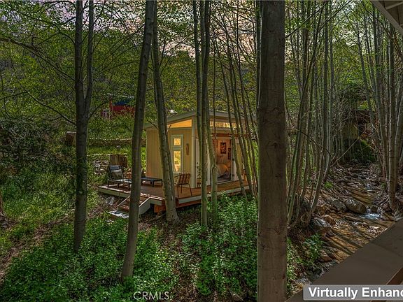 This is a ONCE IN A LIFETIME property! Now an Exceptional Value! Ethereal Estate - European Elegance - On A Creek! Your Very own Private Paradise! This is more than a property, it is an experience! The smile will not leave your face as you enjoy this Magical Creekside Vintage Cabin. This place is all about the Atmosphere! The house is light and airy featuring beautiful French Oak flooring and Stunningly Updated Kitchen and Bathrooms which enjoy Calacatta Umber Marble. The Original Stone Fireplace in the Parisian inspired Living Room adds to the Unmatched Charm. Stay Cool with Whole house A/C. Spacious Upstairs Bedroom and Office Area has Soaring Ceilings. Downstairs features the Primary Suite with radiant heating which opens to the Original Stone Patio with Firepit - situated in the Most Gorgeous and Charming Backyard YOU WILL EVER ENCOUNTER! The Land crosses over the Creek with Enchanting Bridges and has a Lovely Studio Retreat right on the water! The backside of the property is an additional Lot with 2 Sets of House Plans, currently there is an Adorable Barn Shed - enhancing the Character of the property and room for Additional Parking. This Location feels totally private and is completely immersed in nature. This is a One of a Kind Showcase Property, situated on a Year Round Running Creek with Room for Expansion. A Unique Property where Pride of Ownership shines through and your Backyard is your own Adventure Land and Sanctuary on the Stream. Well positioned within minuets of shops and restaurants. Easy to get to but you'll never want to leave! Engage all senses with sensational views, a concerto of chirping birds and the running creek, the feel and smell of the crisp mountain air, "at night the stars put on a show for free..." This place is unbelievably special. Water frontage is everything! Who needs lake rights when you have your very own creek?! Located within 2 hours of most Southern California Cities and Suburbs. The Mountains Are Calling - Come Experience The Best Nature has to Offer! Seller is an Artist, ready to move on to the next project. Check out the video https://www.youtube.com/watch?v=199m27Jw6bY but it is much better in person. Schedule your private showing today!