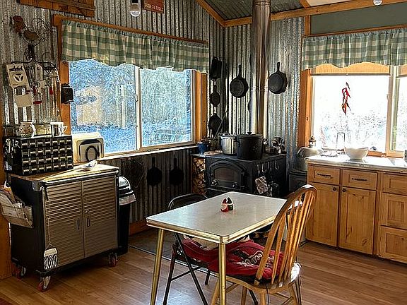 Off the Grid, Move in ready. 20.21 acres of heavily forested property. 3 acres have been cleared/thinned for a cabin, barn, large raised beds garden area and established Orchard with plum trees, elderberry, salmon berries, raspberries, blueberries, blackberries, and strawberries. The 384 ft.² dry cabin is fully furnished, and has a beautiful wood cook stove with oven that was purchased in 2018. A new in 2025, 800 Watt wind turbine generator, solar panels included. The property has a drilled well with 40 gal pressure tank that pushes out 7gpm of the best drinking water you’ll ever taste. There are several outbuildings that include an 8’x12’ outdoor shower house, 8’x8’ dry food storage shed, pump/generator house (Honeywell brand generator stays), a 10’x 15’ newly built shed/cabin that was used for harvesting honey, and making soaps and things. 38’x40’ barn with loft. A 10’x12’ pit greenhouse with 4’x12’ raised garden bed. A large peacock enclosure(14’Wx24’Lx10’H). turkey housing/units, pheasant enclosure, livestock guardian dog (LGD) area. Sustainable rabbit huts/garden beds. Large raised metal storage building (10’x12’). Wood Mizer LT15 sawmill with upgraded Koehler 19hp engine, 16’ log cutting capacity, with lots of spare parts for emergencies, and 7 extra bandsaw blades, purchased new in 2018.