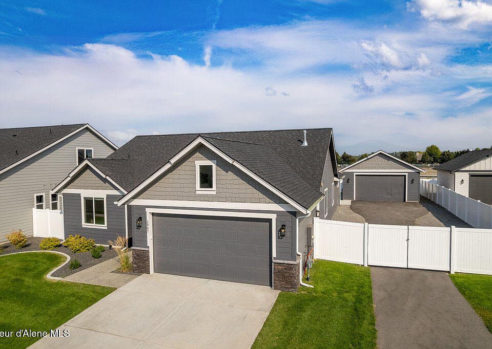 Welcome home to this stylish single-level property designed for open living, with large lot and shop with separate driveway. Featuring 4 bedrooms (1 non-conforming also used as den or office), 2.5 baths, this layout balances functionality with comfort. The expansive great room boasts vaulted ceilings, a shiplap gas fireplace, and abundant natural light. The designer kitchen is a showstopper with stainless steel gas appliances, soft-close cabinetry, solid-surface counters, full-height backsplash, oversized island, and walk-in pantry. Luxury plank flooring runs throughout most of the home, complemented by 9' ceilings and impressive 8' interior doors for a bright, spacious feel. Retreat to the primary suite, complete with a generous walk-in closet and spa-inspired bath featuring double sinks, solid-surface counters, tiled shower, and private toilet. Practical perks include A/C, gas furnace, and a 2 -car garage, plus a BONUS detached 26x24 garage with a 16x9 door and private asphalt drive - perfect for projects, toys, or storage. Outside, enjoy a fully fenced backyard with double gates, RV parking, and a 12x12 covered patio for year-round entertainment. Landscaped front yard compliments a low maintenance turf back yard with irrigation for both. At Parkllyn Estates, community living shines with parks, sport courts, walking trails, and more - all just minutes from retail, schools, and easy interstate access. Modern living. Extra space. A community you'll love to call home.