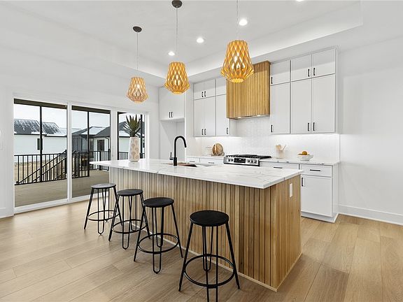 The mid-century vibe of this Frampton Homes beauty grabs your attention from the second you lay eyes on it. You'll love the open floor plan flooded w/light from the oversized windows. The oversized tray ceiling & custom FP surround add character. The kitchen features a large island, soft-close cabinetry, quartz countertops, SS appliances & walk-in pantry w/tons of storage & custom barn doors adding interest & functionality. A large 3 panel slider leads to the composite, screened in deck. Custom lighting & textured backsplash add more interest! The semi-separted but open dining room adds great space for entertaining! Split bedrooms give each main floor bedroom a private feel. The primary suite incl a tray ceiling, walk-in closet w/custom organization & 5 piece bath w/comfort height dual vanity, soaker tub, stunning tile shower & water closet w/floating shelf storage. The 2nd bedroom & full bath sit at the front of the home. The custom designed mudroom bench adds more visual interest & a separate laundry room complete this floor. Don???t miss the large fully insulated, 3 car garage w/ 8??? insulated doors, quiet openers w/wifi & side access walk door. The daylight bsmt incl a large family room, wet bar, 2 addt???l BRs, ?? bath & TONS of storage. A whole house humidifier & dual zone HVAC add to the energy efficiency of the home w/2x6 construction & irrigation to keep your yard looking great. All info obtained from seller & public records.