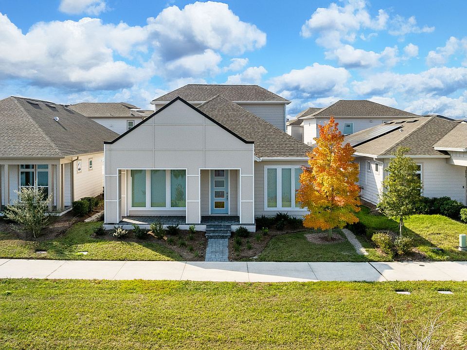 WATERFRONT, LIKE-NEW HOME in the scenic Sunbridge Community! The pristine waterfront views offer spectacular sunsets right from your front porch. The Heart of the home features a Gourmet Kitchen, Family Room, and Dining space that has every upgrade including: a Large Dine-In Island with plenty of storage cabinets and drawers, Light Bright Shaker Style Cabinets, High-End Stainless Appliances, custom backsplash, designer lighting and wood plank flooring just to name a few. Just off the great room, you have access to a covered lanai and extended patio which is the perfect space to lounge and enjoy time with family and friends. The fully upgraded primary suite, 2 bedrooms, and an office/flex space complete the main floor. Upstairs you will find a spacious loft, a Full Bathroom, and a bedroom. High Speed INTERNET INCLUDED in rent! The Weslyn Park at Sunbridge community is known for it's eco-friendly living, strolls along scenic walking trails, picnicking, community garden, playground, gathering lawn, green spaces, and a swimming pool. Premier Location Minutes from Lake Nona, Orlando International Airport, Major Highways, Shopping, Dining, USTA and KPMG.