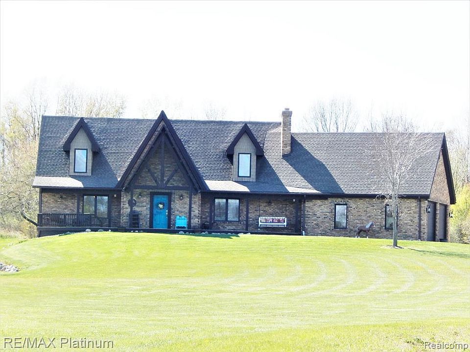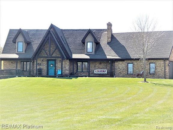 Exquisite custom brick/timber/stone home on 10 acres, views all around. Open floor plan w stone frplc & service bar area. Full log beams, half log stairs, vaulted ceilings. Quality materials/craftsmanship went into building this unique home. 1st floor Master Suite w 7X6 walk-in closet. Bonus rm above garage would make a great bedroom & additional areas in basement could also be another bedroom w daylight window access. 1st floor laundry has lead glass cabinets. Beautiful 10 acres is a wildlife sanctuary, some woods/open meadows. Loads of storage & separate mechanical room. Great back deck with frplc & new roof. Backyard has a fountain & pond, great for entertaining. There are too many custom features to list here. Pole barn is 48X32 w 34X32 addition & 21X12 lean-to, large overhead doors & concrete floor, 220 electric, water, hydraulic lift excluded. Easy access to 52/96/127, Lansing/Howell/Chelsea/Jackson/Ann Arbor. Washer, Dryer excluded. This place is incredible, a must see!