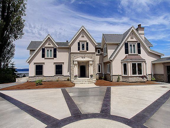 2008 Luxury home situated on 8.17+/- acre, Estate size site with 108 ft+/- low-bank Puget Sound waterfrontage. Home has 9714 sf per appraisal. Interior features high-end fixtures and appliances , extensive woodwork and trim , high quality finishes, customary in estate residences, comparing well with other high-end estates in the Pacific NW. Includes unfinished area over separate garage with bath, guest home with 2 levels, sports courts, upper property barn and garage.