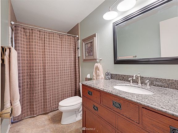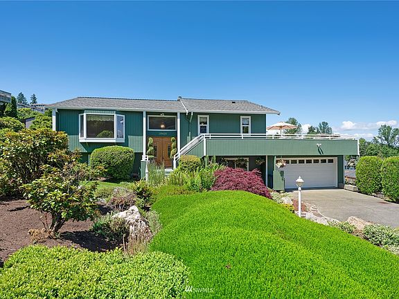 Spectacular VIEW home in much sought after Mar Cheri. Ultimate entertainment deck with plumbed in gas barbeque , all furnishings and a great view of Poverty bay, Puget sound and Vashon Island and also a outdoor sink/bar area. Some of the many quality upgrades include a hybrid heating system, tankless hot water, whole house generator, air conditioning and an 800 sq ft 4 car tandem garage/shop with 220 power. Downstairs has been tastefully updated to include a kitchen with granite countertops, wine cellar, media room with surround sound, a large bonus room with and exquisite Brunswick pool table a spacious bedroom or office and a half bath. The beautifully landscaped yard has a shed and back patio. Community pool and sport courts.