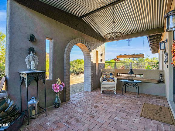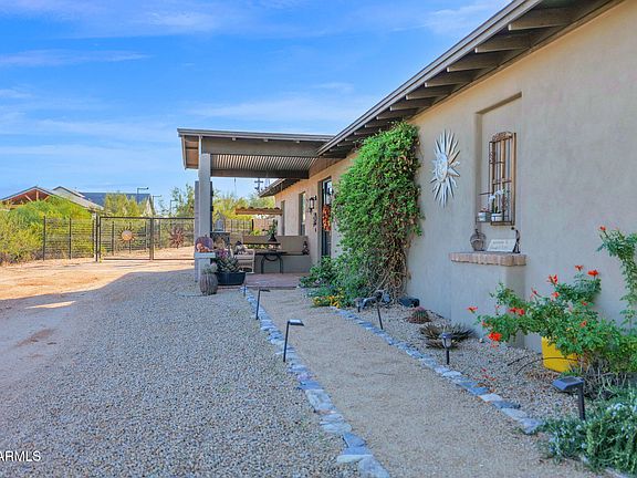 Set on just over an acre in beautiful Cave Creek, this 3-bedroom, 2-bath home blends rustic charm with thoughtful design and modern comfort. The inviting open floor plan connects a bright living area—accented by warm brick walls, timeless tile floors, and natural light—to the kitchen and dining space, perfect for everyday living or entertaining friends. The interior radiates authentic Cave Creek style: a mix of Southwest warmth and casual elegance. Step outside to a private backyard retreat featuring a built-in BBQ, fountain, and easy-care turf—ideal for quiet evenings and glowing sunsets. Horse-friendly with room for an RV or toys, plus a two-car garage for projects or storage. Enjoy the tranquility of desert living just minutes from Cave Creek's trails, local shops, and dining.... A perfect balance of comfort, character, and location welcome home.
