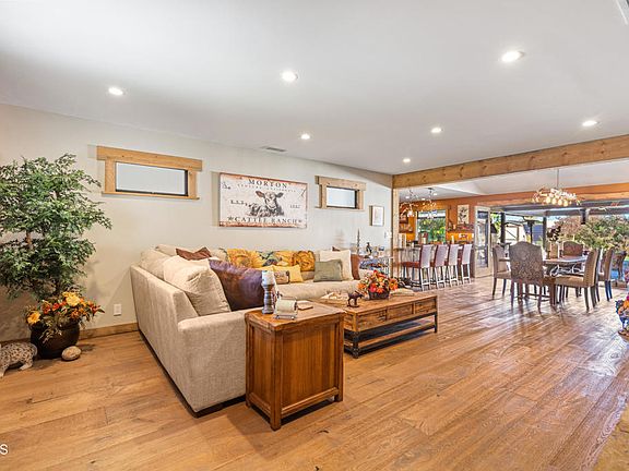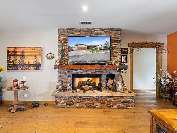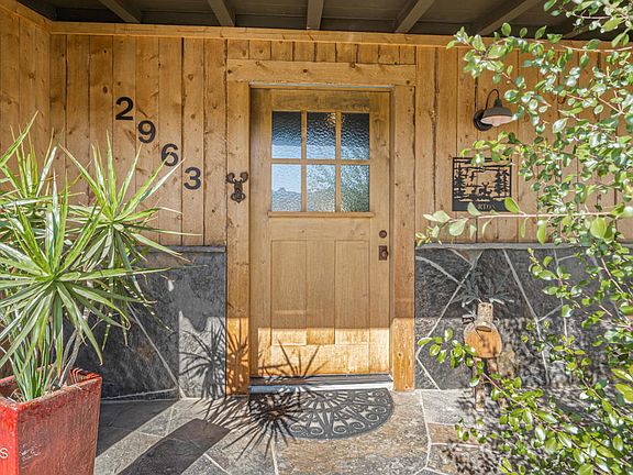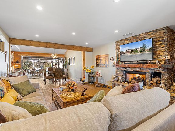 THIS is an AMAZING HOME. Unique and custom made by the owner. When you arrive by invitation you'll begin to relax immediately when you hear the sounds of the local quarry stone waterfalls and notice the pride in this cabin/ranch style home. As you enter, you'll see the oak flooring is one of a kind. The wood trim throughout the house is Beetle Kill pine. The cabin style living room fireplace is woodburning or gas. The mantel is handmade Douglas Fir and the hearth is Sweetwater mud from Oklahoma. If you want an ADU, you have it in this home. One of the 2 extra bedrooms is an office with a separate entry. This Chef's kitchen has granite countertops that are petrified forest. There is a 5-burner gas stove and commercial grade refrigerator. The entire house is prewired with ethernet and the water is purified through a filtration system. The HVAC is electronically purified throughout the home. The Master Bedroom has vaulted ceilings, a walk-in closet and glass French doors that open out to the backyard entertaining area. The master bathroom has separate shower, tub and toilet areas. You will not want to leave this luxurious overhead stone shower. You will see barndoors through the house. The backyard is an entertainer's delight. You have a TV, Projector/Screen for outdoor movie nights a popcorn maker, pizza oven, bar area with Beetle Kill pine bar height benches, overhead heating, lighting, large countertop prep area, sink/garbage disposal, refrigerator/freezer, icemaker, range and Firepit. Near the spa, where there is room for a pool, there is a an enclosed outside shower with its own water heater and outdoor toilet. The second garage has an attached wood/craft shop that has power, cabinetry and a wall AC Unit. There is an avocado tree, lime tree, garden planters and storage shed. There is a 50-year presidential roof, Tankless Water Heaters and the solar system (leased) runs the house completely with a generator backup. HUGE RV parking w/Hookups. There are air compressors in the wood/craft area that are negotiable and a car hoist that is also negotiable.