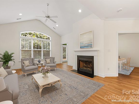 Welcome to Bella Sera Villas where comfort, style, and convenience come together! This charming patio home is ideally located near all Matthews has to offer with shopping, dining, and entertainment just minutes away. Move-in ready with fresh neutral paint, gleaming wood floors in the main living areas, and brand-new carpet in the bedrooms, this home shines from the start. The spacious, open kitchen boasts white cabinetry, a classic tile backsplash, recessed lighting, pantry storage, and a breakfast bar that flows seamlessly into the dining area with tray ceiling and crown molding. An adorable breakfast nook offers the perfect spot for morning coffee. The inviting great room features soaring cathedral ceilings and a cozy gas fireplace, while a wall of windows in the adjoining sunroom floods the space with natural light. Need extra space? A flexible room just off the great room is perfect for a home office or hobby retreat. The primary suite is a true gem with its tray ceiling, walk-in closet, and spa-like bath with dual vanities, soaking tub, and separate shower. A secondary bedroom with ceiling fan and a full bath offer comfort for family or guests. Enjoy the outdoors on your private wrap-around patio overlooking a tree-lined backdrop, ideal for relaxing or entertaining. Additional perks include a two-car garage with painted walls and floor as well as 2" blinds throughout the home. Bella Sera Villas offers fantastic community amenities: a clubhouse, outdoor pool, pond, bocce ball, and scenic walking trails. Join neighbors for activities or take a quiet stroll around the pond. Either way, you’ll love the lifestyle!