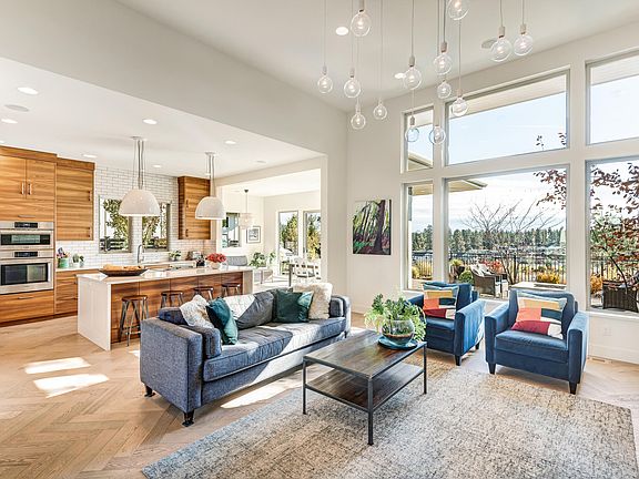 Perched on a ridge above Discovery Park, this award-winning home was the personal residence of one of the top builders in Bend. A striking glass entryway frames immediate great room views, with a wall of windows, hardwood floors, built-ins, and a rock fireplace. The designer kitchen features a large island, custom cabinetry, quartz, and top-tier appliances, opening to a dining area with banquette seating and access to spacious covered/open patios. The main-level primary suite offers lake views, a tiled shower, soaking tub, walk-in closet, and an adjacent private office. Upstairs, find two more bedrooms and a large bonus room, both with views. A 3-car garage with an epoxy floor and a mudroom with built-ins are ideal for outdoor adventures. This ridge-top home is conveniently located near Bend's best restaurants, shops, schools, parks, and trails.