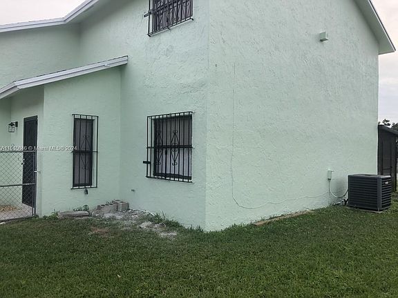 This is it! Look no more. Close to US 1 and the Florida Turnpike. Opportunity to own a 3 bedroom 3 bath home with over 2000 sqft. Located in an small established Homestead called Greenwood Villas on a cul-de-sac. 1 bedroom down stairs and two bedrooms upstairs. It has 1 full bathroom for guest at entrance and 2 additional bathrooms upstairs. Huge walk-in closet in Master. Kitchen upgraded with Granite counters, L-Shaped and open to living area. Fenced back yard, additional living space with a screened in patio for entertainment off the Kitchen. House was remodeled completely in 2023. Laminate floors, ceramic tile in Kitchen and bathrooms, lots of closet space, new Central AC, Garage with Washer/dryer. Don't miss this opportunity for the first time buyer or family.