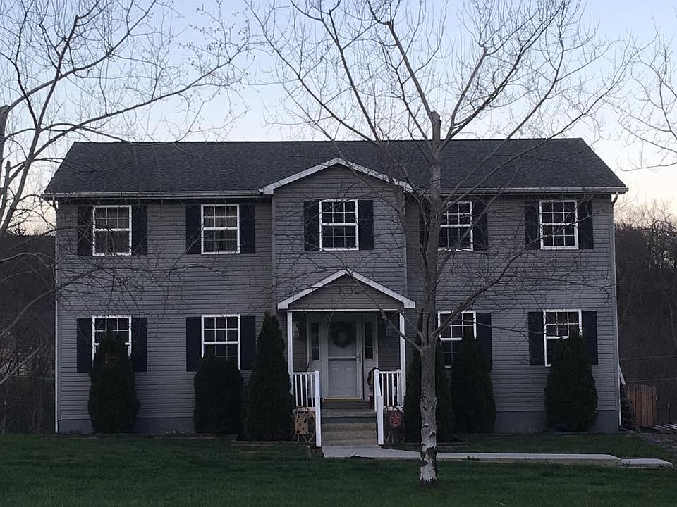 This spacious two-story home offers an open entry foyer, living room, kitchen with eat-in area, dining room, den, laundry and 1/2 bath on the main level. Second level offers a master suite with bath and walk-in closet, two additional bedrooms and a full bath. Full basement that is partially finished and offers ground level walk-out. Large rear deck, front covered porch and large yard. Detached 28'x 46' pole built garage and 10'x 16' storage shed. Electric baseboard heat, pellet stove, 200-ampere electric and new electric hot water heater.