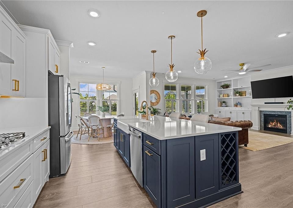 Skip the wait—step into luxury now! This upgraded Rosaleigh II model offers 6 beds, 4 full baths, a 3-car garage, and designer finishes throughout. Enjoy a spacious layout with a 1st-floor Guest Suite, Home Office with French doors, Formal Dining, and a Gourmet Kitchen featuring quartz counters, custom cabinetry, walk-in pantry, and large island. Upstairs, the Primary Suite boasts tray ceilings, dual walk-ins, and a spa-like bath with tile shower, soaker tub and quartz vanities. Jack and Jill bedrooms, a large Media/6th bedroom, and Laundry Room provide versatile space. Thoughtful touches like custom wallpaper, wainscoting and champagne gold accents add sophistication. Located in Ashville Park with resort-style amenities—pool, trails, playground. Luxury, style, and space—all move-in ready!