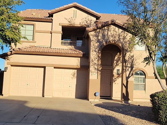Welcome to this stunning 4-bedroom, 2.5-bathroom home in the highly sought-after Johnson Ranch community in San Tan Valley. With 2,496 sq. ft. of living space, this home offers comfort and style throughout. Enjoy a spacious master suite featuring two walk-in closets and a private balcony with breathtaking mountain views. Situated on a quiet cul-de-sac, the home provides ultimate privacy with no neighbors on one side or behind. As a resident of Johnson Ranch, you'll have access to three community pools, a golf course, parks, and scenic walking trails—everything you need for a relaxing and active lifestyle. Experience peaceful living with the best views in the neighborhood!