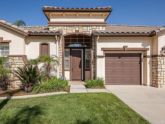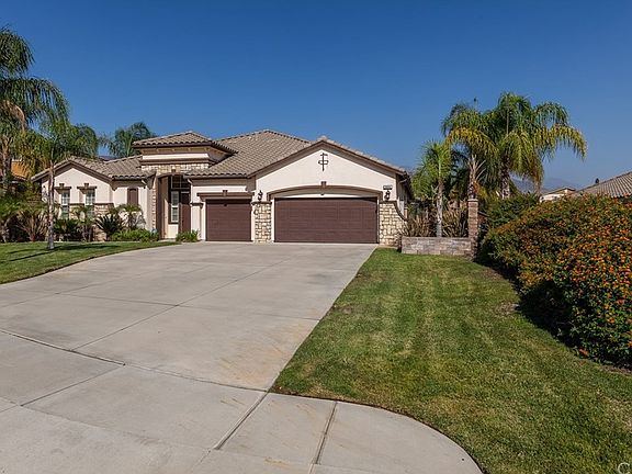 Immaculate, single story pool home in East Highland. The fabulous layout of this home has all the right spaces. Featuring three spacious bedrooms all with large walk-in closets, four luxuriously upgraded bathrooms, a private office with impressive maple hardwood flooring and indoor laundry room. Enjoy large gatherings in the elegant living/dining area or entertain for just a few in the cozy family room. Whether you spend a lot of time cooking or not, you will adore this gorgeous kitchen. Expansive granite countertops, dual ovens, five burner cooktop, breakfast counter, walk-in pantry and cabinets galore leave nothing to be desired. You will absolutely fall in love with the low maintenance back yard. As you step outside, you are greeted by a sparkling pool/spa complete with rockslide and waterfall. The built in barbecue island is both functional and attractive. In addition, there is a pool house with a full bath and plenty of storage space for towels and pool toys. Some other special features of this home include crown molding, plantation shutters, solar panels, and a three car garage with finished floors and custom cabinetry. To top it all off, the location can not be beat! Situated at the end of the cul-de-sac in East Highland with no HOA fees. In the prestigious Redlands school district and close to shopping and entertainment. Do not miss out on this beautiful home.