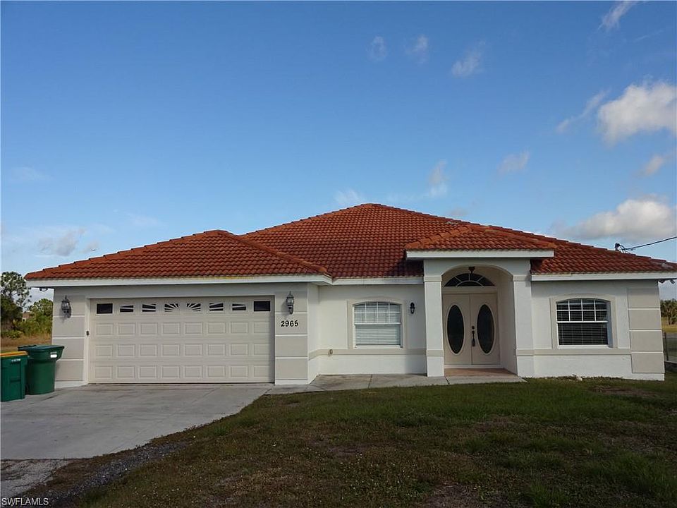 Spacious house in Golden Gate Estates with 4 bedrooms, 3 bath, two-car garage, sits on 1.14 acres cleared lot. Featuring tile roof, granite countertops, custom cabinets, 24x24 porcelain tile, tray ceiling in the master bedroom and crown moldings throughout the house. The large lanai is perfect to relax after a long day of work overlooking the backyard with room for a pool..perfect for family gatherings. Don't miss this opportunity to make this home yours and live the serenity and privacy of the estates. Motivated seller!!!!!