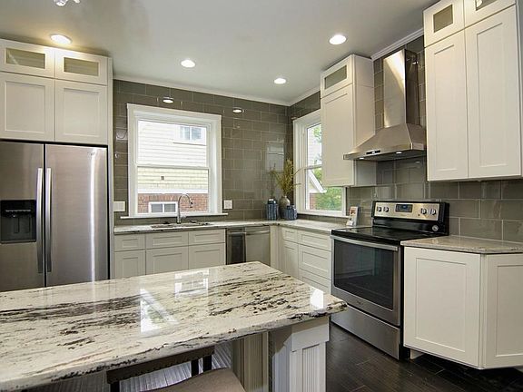 Quartz countertops and islandStainless steel appliancesExposed brickFaux fireplacesHardwood floorsNew carpetingSpa-like bathrooms