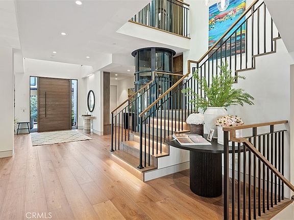 Welcome to this extraordinary custom estate perched in the Hermosa Hills and set on a large, flat corner lot - an exceptional rarity in Hermosa Beach, where modern design and coastal luxury meet. With 7 bedrooms, 7.5 baths, and over 7,800 square feet of impeccable living space, this home offers the best of coastal living: elevated design, breathtaking views and effortless sophistication. The architectural craftsmanship is unmistakable—an oversized pivot wood front door, wraparound front deck and an open-concept layout that seamlessly blends indoor and outdoor living. A dramatic glass-encased elevator serves as a sculptural centerpiece, connecting each level with ease. The main living area features a stone fireplace, wood-detailed ceilings and folding glass walls that open to an entertainer’s dream: a covered outdoor pavilion with kitchen pass-through, bar seating, pool and spa, fire pit and built-in lounge seating—all enhanced by custom lighting for an inviting nighttime ambiance. The gourmet kitchen is both functional and beautiful, showcasing a waterfall island of natural stone, designer backsplash, custom cabinetry and a cozy built-in breakfast nook. A formal dining area and multiple living spaces offer room for gatherings large and small. Upstairs, the primary suite is a serene retreat with a private terrace, marble-clad bath, soaking tub, and adjacent office with its own ocean-view patio. The lower level is pure leisure—complete with a full bar, movie theater, game room, and home gym. Every detail has been curated for luxury living: custom railings, designer fixtures, home automation, sound and theater systems throughout, security cameras, a full water filtration system and a four-car garage with built-in storage.