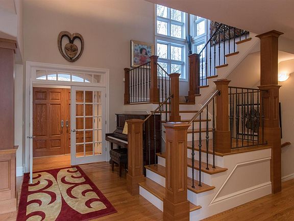 Warmth, elegance and sophistication. Privately tucked back on 1.37 acres, this stunning home lives and entertains beautifully. 7528 total sq ft, 8 br, 7.5 ba, gorgeous oak floors, stunning cherry cabinets, solid core doors, built in speakers for sound on main fl and 2nd fl mbr. Central vacuum system. Geothermal HVAC w 3 zones, 3 water heaters, two 40 gal and one 30 gal, 80 gal storage tank; central vac, soaring ceilings & windows galore with spectacular natural light.