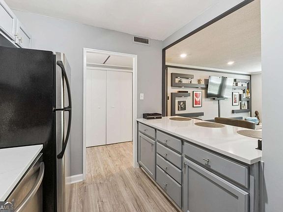 Welcome to one of the largest and most upgraded 2-bedroom units in Slaton Manor, where modern living meets smart technology in the heart of Buckhead. This spacious 2-bedroom, 2-bath condo features full Google Smart Home integration-just add your Nest Hub. Enjoy smart lighting, a smart thermostat, and a security system that provide convenience and peace of mind. Recessed lighting highlights the sleek, open-concept layout, while oversized windows fill the home with natural light and offer serene treetop views. The updated kitchen boasts quartz countertops, stainless steel appliances, and a stylish backsplash. Both bedrooms are generously sized with upgraded finishes and ample closet space. One reserved parking space is included (monthly fee applies), offering added convenience in this highly sought-after community near premier shopping, dining, and entertainment. HOA includes utilities: Electricity, Water, Trash! Plus: Pool, fitness center! Seller incentive: With an acceptable offer, the seller will cover six months of HOA special assessments for the NEW ELEVATOR!!!