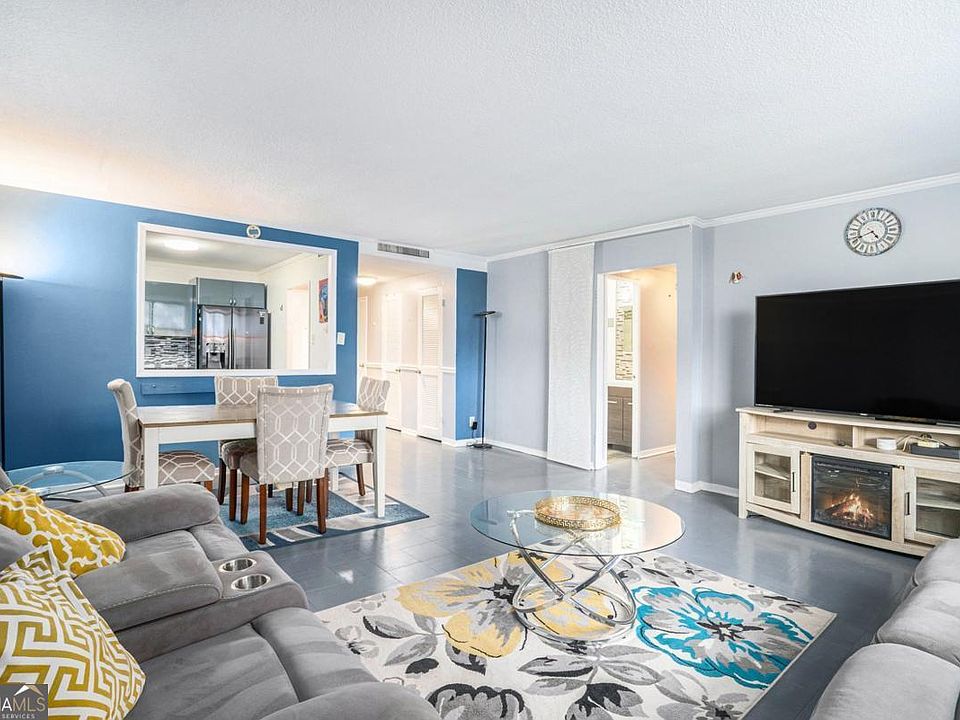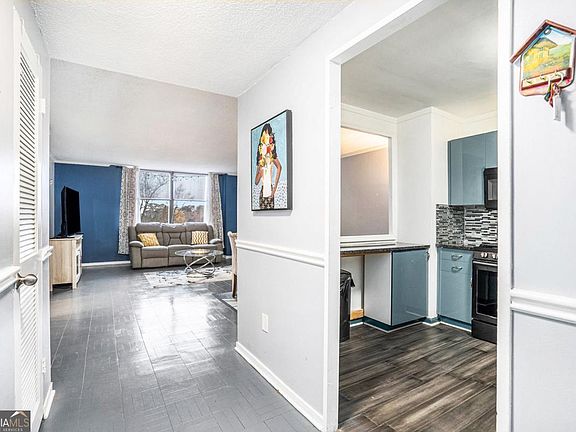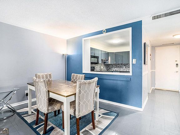 Discover a home that radiates personality and warmth from the moment you step inside this sixth-floor corner residence at Slaton Manor. The space feels instantly special, grounded by distinctive grey-painted parquet floors and anchored by a vibrant kitchen where high-gloss blue cabinetry and a shimmering mosaic backsplash create a joyful culinary backdrop. Whether you're preparing a meal on the stainless steel gas range while chatting through the open pass-through window, or relaxing in the sun-drenched living area against the backdrop of sweeping Buckhead skyline views, the flow here is effortless. The comfort extends to the private quarters, featuring a serene bedroom with a calming blue accent wall and a renovated bathroom tailored with a chic dark vanity and a spa-inspired dual shower head. Experience effortless living with fantastic building perks, including a fully equipped community room for entertaining, convenient laundry facilities, and extra storage. Escape to the outdoors in the beautiful backyard oasis, complete with a fenced pool accessible directly from the lobby. With two reserved garage spots included, parking is never an issue. Located just steps from Peachtree Road, you'll love having Buckhead's vibrant mix of coffee shops, dining, and shopping right at your doorstep. This is a home that doesn't just offer convenience-it invites you to live beautifully in the center of it all.