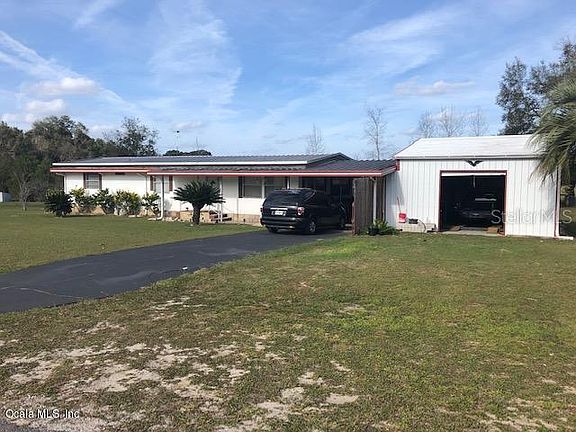 Location, Location, Location!! Close to Belleview, Summerfield and the Villages. Nice and well kept. New floors in living area. New carpet in guest bedrooms. Bathrooms have been remodeled. Metal roof. New well pump. A/C recently refurbished. Come and enjoy your morning coffee from the back enclosed porch with great views of farmland that backs the property line. The mobile home has been recently leveled and inspected. And for those cars enthusiast that like to work on cars, the property has a 476 sq ft workshop complete with a lift that is rated at 12,000 lbs. The shop has power and air compressor for your tools. Don't miss out on this unique property.