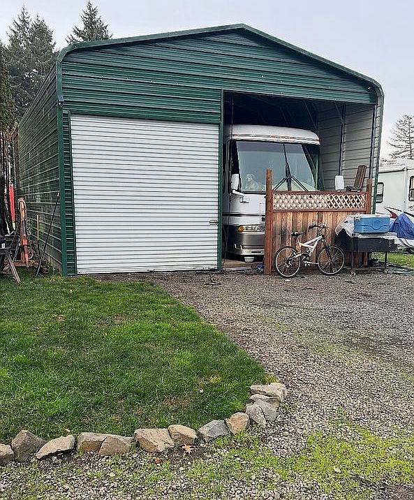 This RV features a newer A/C unit and comes equipped with a washer and dryer, offering convenience and comfort year-round. The carport provides plenty of covered space for your RV, vehicles, or outdoor living setup.