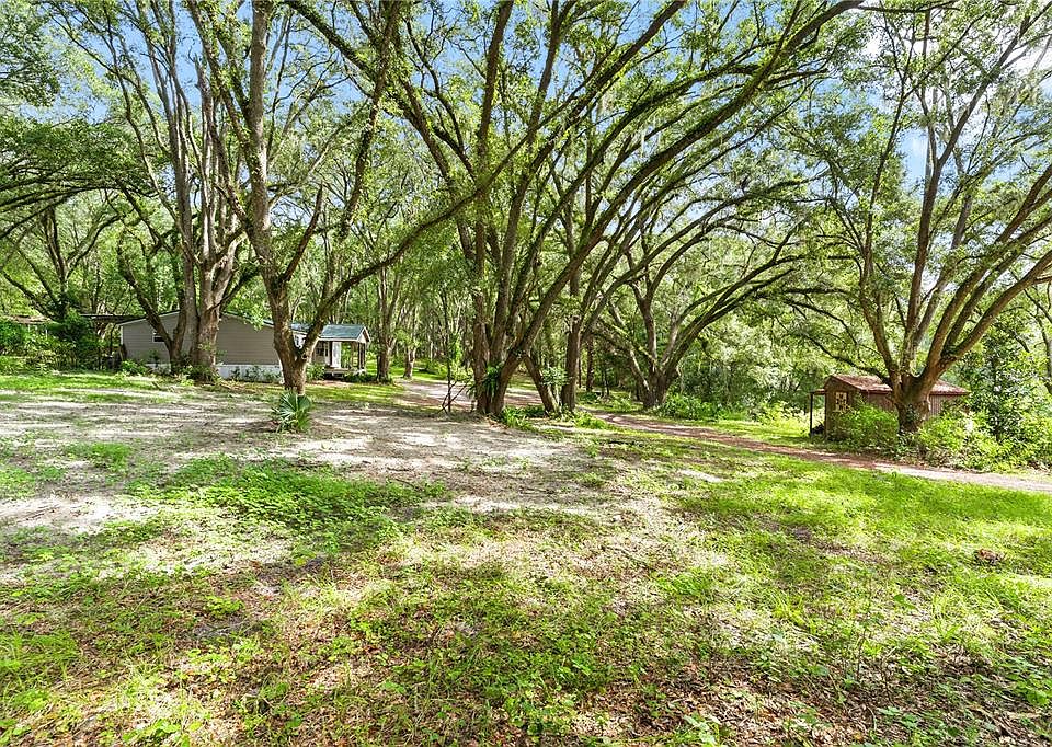 Escape to your own PRIVATE RETREAT on 10 wooded acres just minutes from the Ocala National Forest on DESIRABLE RAVENSWOOD RD! Perfect for equestrians, TRAILRIDERS, hikers, hunters, and nature lovers alike. This beautifully renovated 2002 DWMH combines RUSTIC CHARM with MODERN UPDATES—featuring wood floors, a farmhouse-style kitchen with GRANITE counters, and a spa-inspired primary bath with a refreshed- tile shower and freestanding country tub. Kick back and enjoy serene mornings and evenings surrounded by nature, with frequent sightings of wild turkey, deer, hawks, and even the occasional peacock strolling by. Located on a paved road at the edge of the Forest with a FENCED BACKYARD, the property includes a detached 30x36 metal garage suitable for multiple cars, trucks, campers and storage, a RV carport, a she-shed, and garden sheds. CALL NOW to LIVE this inviting COUNTRY LIFESTYLE just a short drive from town conveniences all on a PAVED ROAD at the edge of the Forest. Located between Orlando and The Villages, Daytona and Ocala, just outside of charming Mount Dora.