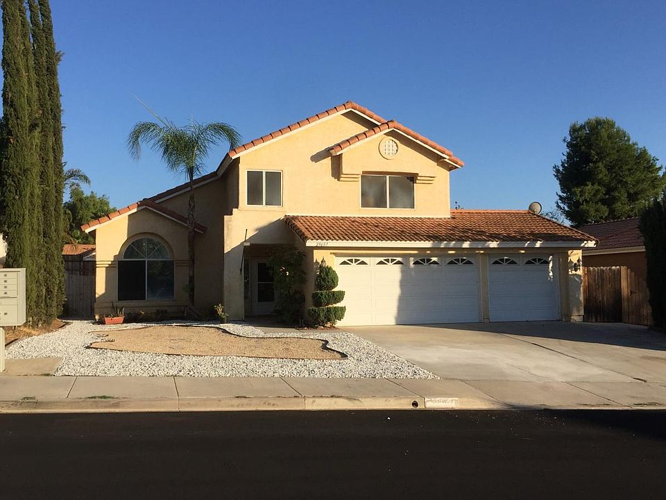 Tile flooring on first floor, new carpet on upstairs bedrooms, and laminate floor in walking hall upstairs. Bright and sky light upstairs. Central heat and air conditioning. Refrigerator, stove and dishwasher. Large walk in closet in master bedroom. Laundry room downstairs. Three car parking garage. Big back yard with patio. Located in the central of Temecula, close to I-5, Temecula Elementary School, Temecula Town Center, and the area's best shopping and dining. Tenant responsible for gas and electric. Minimum credit score 640