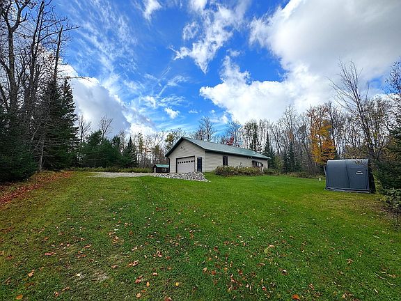 Exceptional opportunity on Mary Lake! This year round cabin is situated on 5.25 acres with over 240 feet of sandy, undeveloped shoreline. the cabin is divided into two sections, with one half serving as a garage and the other half living quarters. Notable features include high ceilings, Tongue and Groove paneling, stackable washer and dryer. pine paneled doors and a covered porch ideal for lounging in the shade. An additional bunkhouse with electricity rests on the property along with a cozy single occupancy cabin situated at the water's edge. Mature Red and White Pines dot the property, which is conveniently located near public lands. Mary lake is renowned for it exceptional pan fishing, with an abundance of fish visible right from the dock. The property offers the flexibility to either complete the existing cabin or construct a new, custom dream home!
