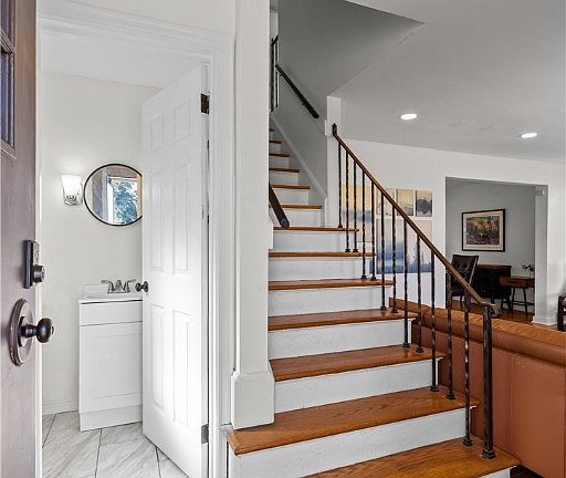 Welcome home! This mid-century home sits along Beechwood Boulevard on a stretch of similar 1950s architecture. Recent exterior updates, including fresh paint and landscaping, give the property a clean and inviting look. Inside, original hardwood floors flow throughout a spacious living room with a wall of windows and a large kitchen offering plenty of cabinet space and potential for future equity. Upstairs, the oversized primary bedroom stands out with sweeping valley views, a walk-in closet, and new barn door. Two additional bedrooms and a full bath complete the level. Other improvements include refreshed baths, recessed lighting, updated fixtures, six-panel doors, and window treatments. The garage features upgraded flooring and lighting, while the basement provides high ceilings and level floors across all levels. A flat roof adds future potential for a rooftop deck, and the backyard offers ample space for outdoor living.